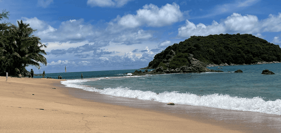 Nai Harn Beach sits on the southwestern tip of Phuket, sheltered by green headlands on either side and backed by a freshwater lagoon fringed with casuarina trees.